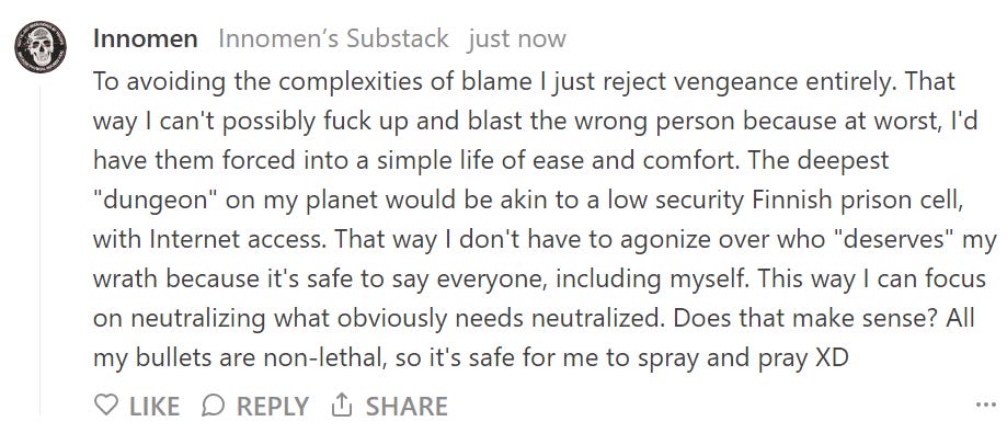 That bothers me. This is spin in direct service of death and pain in the hopes that it indirectly opposes death and pain. This is exactly the thing I feared and mentioned.